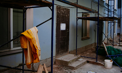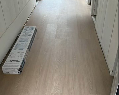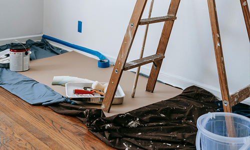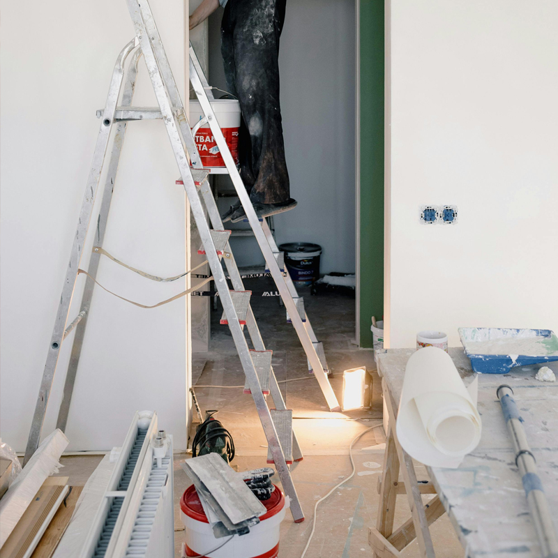 Nettoyage des surfaces, protection des sols, réparation des surfaces fissures ou imperfections avec un enduit.
